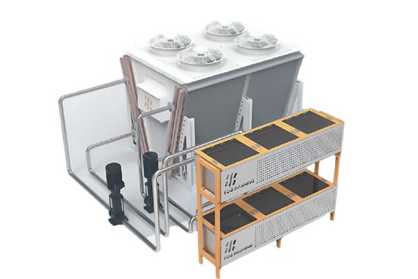 Cryptocurency mining equipment is placed in an immersion cooing cll,where a liouid coolant circulates in a closed loop, Heatis transfered via a dedicated plate heatexchanger to a central system and disipated through a dny coler. This system ensures optimal heat dissipation,stable equipmen operation, and alows overclocking of upto 40%. Compared to traditional air cooling, immersion cooling offers greater eficiency, higher proftability, and long-term reliability.
